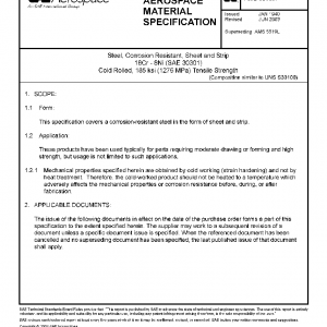Steel, Corrosion Resistant, Sheet and Strip 18Cr – 8Ni (SAE 30301) Cold Rolled, 185 ksi (1276 MPa) Tensile Strength