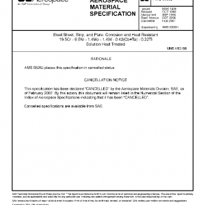 Steel Sheet, Strip, and Plate, Corrosion and Heat Resistant, 19.5Cr – 9.5Ni – 1.4Mo – 1.4W – 0.42(Cb+Ta) – 0.22Ti, Solution Heat Treated(Cancelled Feb 2007)