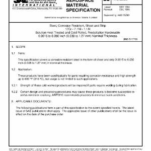 Steel, Corrosion Resistant, Sheet and Strip 17Cr – 7.1Ni – 1.1Al Solution Heat Treated and Cold Rolled, Precipitation Hardenable 0.0015 to 0.050 Inch (0.038 to 1.27 mm) Nominal Thickness