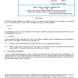 Steel, Corrosion Resistant, Sheet and Strip 17Cr – 7.1Ni – 1.1Al Solution Heat Treated and Cold Rolled, Precipitation Hardenable 0.0015 to 0.100 inch (0.038 to 2.54 mm) Nominal Thickness