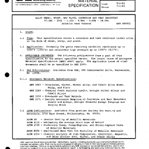This specification covers a corrosion and heat resistant nickel alloy in the form of sheet, strip, and plate.