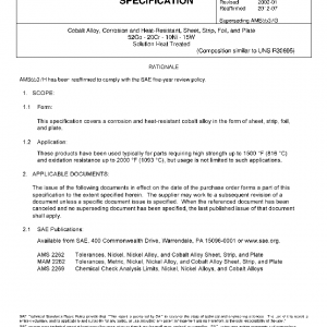 This specification covers a corrosion and heat-resistant cobalt alloy in the form of sheet, strip, foil, and plate.