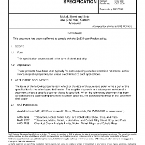 Nickel, Sheet and Strip Low (0.02 max) Carbon Annealed