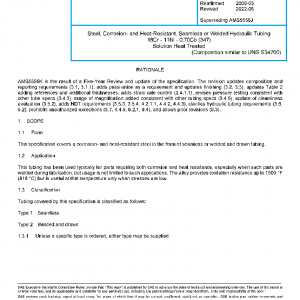 Steel, Corrosion- and Heat-Resistant, Seamless or Welded Hydraulic Tubing 18Cr – 11Ni – 0.70Cb (347) Solution Heat Treated
