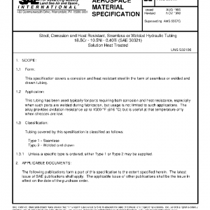 Steel, Corrosion and Heat Resistant, Seamless or Welded Hydraulic Tubing 18.5Cr – 10.5Ni – 0.40Ti (SAE 30321) Solution Heat Treated