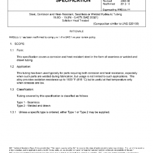 Steel, Corrosion and Heat-Resistant, Seamless or Welded Hydraulic Tubing 18.5Cr – 10.5Ni – 0.40Ti (SAE 30321) Solution Heat Treated