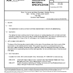 Steel, Corrosion and Heat-Resistant, Welded Tubing 18Cr – 10.5Ni – 0.70Cb (SAE 30347) Thin Wall Solution Heat Treated