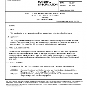Steel, Corrosion and Heat-Resistant, Welded Tubing 18Cr – 10.5Ni – 0.70Cb (SAE 30347) Thin Wall Solution Heat Treated