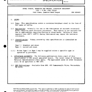 STEEL TUBING, SEAMLESS AND WELDED, CORROSION RESISTANT 19Cr – 9.5Ni (SAE 30304) Cold Drawn, Quarter-Hard Temper