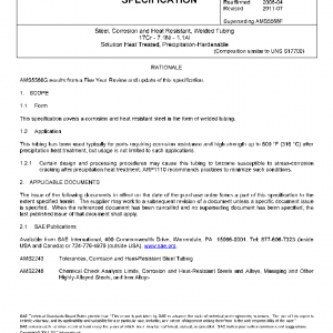 Steel, Corrosion and Heat Resistant, Welded Tubing 17Cr – 7.1Ni – 1.1Al Solution Heat Treated, Precipitation-Hardenable
