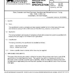 This specification covers a corrosion and heat resistant steel in the form of two types of thin-wall, close-tolerance tubing 0.125 to 2.00 inches (3.18 to 50.8 mm), inclusive, in nominal OD.