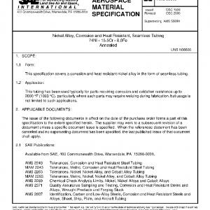 This specification covers a corrosion and heat resistant nickel alloy in the form of seamless tubing.