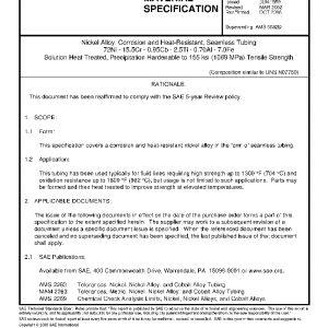 This specification covers a corrosion and heat-resistant nickel alloy in the form of seamless tubing.
