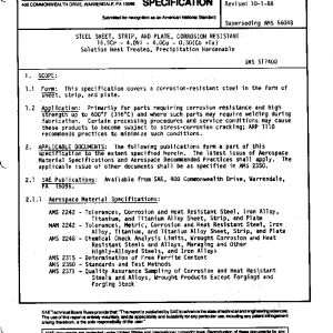STEEL SHEET, STRIP, AND PLATE, CORROSION RESISTANT 16.5Cr – 4.0Ni – 4.0Cu – 0.30(Cb + Ta) Solution Heat Treated, Precipitation Hardenable