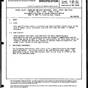 This specification covers a corrosion and heat resistant nickel alloy in the form of sheet, strip, and plate 1.00 inch (25.4 mm) and under in nominal thickness.
