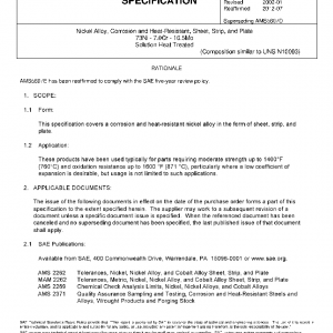 This specification covers a corrosion and heat-resistant nickel alloy in the form of sheet, strip, and plate.
