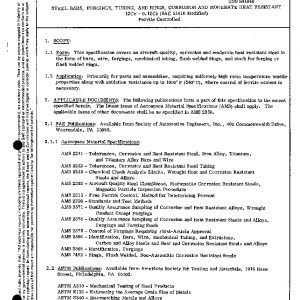 This specification covers an aircraft-quality, corrosion and moderate heat resistant steel in the form of bars, wire, forgings, mechanical tubing, flash welded rings, and stock for forging or flash welded rings.
