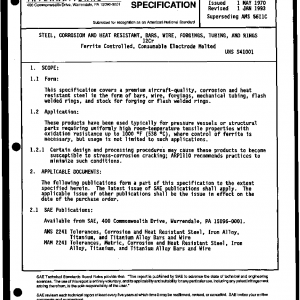 STEEL, CORROSION AND HEAT RESISTANT, BARS, WIRE, FORGINGS, TUBING, AND RINGS 12Cr Ferrite Controlled, Consumable Electrode Melted