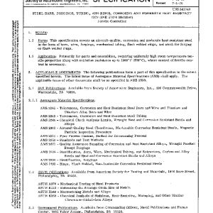 This specification covers an aircraft-quality, corrosion and moderate heat resistant steel in the form of bars, wire, forgings, mechanical tubing, flash welded rings, and stock for forging or flash welded rings.