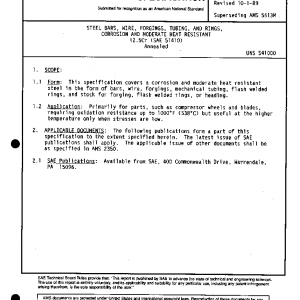 This specification covers a corrosion and moderate heat resistant steel in the form of bars, wire, forgings, mechanical tubing, flash welded rings, and stock for forging, flash welded rings, or heading.