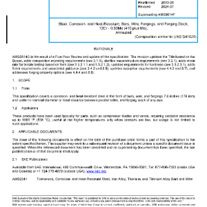 This specification covers a corrosion- and heat-resistant steel in the form of bars, wire, and forgings 7.0 inches (178 mm) and under in nominal diameter or least distance between parallel sides, and forging stock of any size.