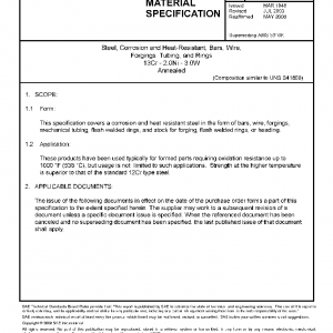 This specification covers a corrosion and heat resistant steel in the form of bars, wire, forgings, mechanical tubing, flash welded rings, and stock for forging, flash welded rings, or heading.