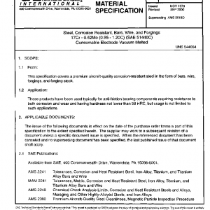 This specification covers a premium aircraft-quality corrosion-resistant steel in the form of bars, wire, forgings, and forging stock.