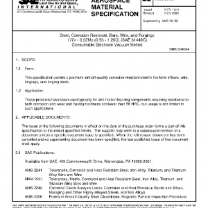 This specification covers a premium aircraft-quality corrosion-resistant steel in the form of bars, wire, forgings, and forging stock.