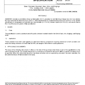 This specification covers a premium aircraft-quality corrosion-resistant steel in the form of bars, wire, forgings, and forging stock.