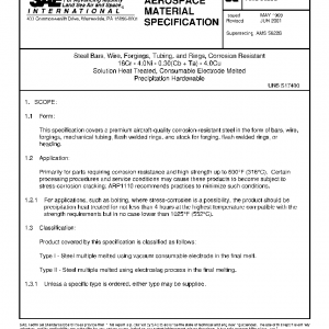 This specification covers a premium aircraft-quality corrosion-resistant steel in the form of bars, wire, forgings, mechanical tubing, flash welded rings, and stock for forging, flash welded rings, or heading.