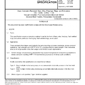 This specification covers a corrosion-resistant steel in the form of bars, wire, forgings, flash welded rings, extrusions, and stock for forging, flash welded rings, or extrusion.