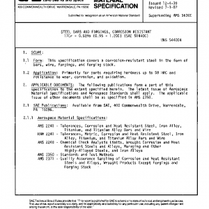 STEEL BARS AND FORGINGS, CORROSION RESISTANT 17Cr – 0.52Mo (0.95 – 1.20C) (SAE 51440C)