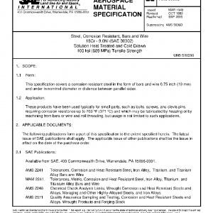Steel, Corrosion Resistant, Bars and Wire 18Cr – 9.0Ni (SAE 30302) Solution Heat Treated and Cold Drawn 100 ksi (689 MPa) Tensile Strength