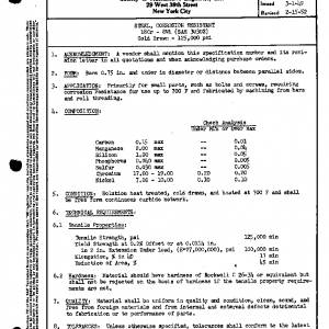 STEEL, CORROSION RESISTANT 18Cr – 8Ni (SAE 30302) Cold Drawn – 125,000 psi
