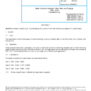 Steel, Corrosion-Resistant, Bars, Wire, and Forgings 18Cr – 9.0Ni Free Machining