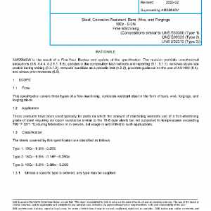 This specification covers three types of a free-machining, corrosion-resistant steel in the form of bars, wire, forgings, and forging stock.