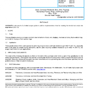 This specification covers a corrosion-resistant steel in the form of bars, wire, forgings, mechanical tubing, flash welded rings, and stock for forging or flash welded rings.