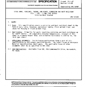 This specification covers a corrosion and heat resistant steel in the form of bars, wire, forgings, mechanical tubing, flash welded rings, and stock for forging or flash welded rings.