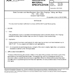 This specification covers a corrosion and heat-resistant steel in the form of bars, wire, forgings, mechanical tubing, flash welded rings, and stock for forging or flash welded rings.