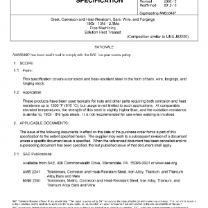This specification covers a corrosion and heat-resistant steel in the form of bars, wire, forgings, and forging stock.