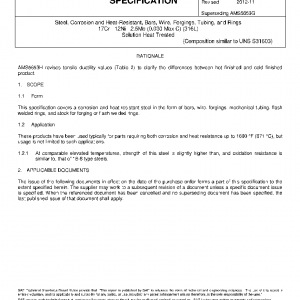 This specification covers a corrosion and heat-resistant steel in the form of bars, wire, forgings, mechanical tubing, flash welded rings, and stock for forging or flash welded rings.