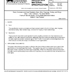 Steel, Corrosion and Heat Resistant, Bars, Wire, Forgings, Tubing, and Rings 18Cr – 11Ni – 0.60(Cb + Ta) (SAE 30347) Premium Aircraft Quality, Consumable Electrode Melted Solution Heat Treated