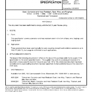 Steel, Corrosion and Heat Resistant, Bars, Wire, and Forgings 12.5Cr – 0.75Ni – 1.0Mo – 1.0W – 0.24V (0.20-0.25C) Hardened and Tempered