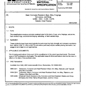 This specification covers a corrosion-resistant steel in the form of bars, wire, forgings, extrusions, flash welded rings, and stock for forging, extruding, or flash welded rings.