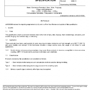 This specification covers a corrosion-resistant steel in the form of bars, wire, forgings, flash welded rings, extrusions, and stock for forging, flash welded rings, or extruding.