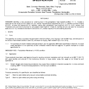 This specification covers a corrosion-resistant steel in the form of bars, wire, forgings, flash welded rings, and extrusions in the solution heat treated condition (See 8.3), and stock for forging, flash welded rings, or extruding.