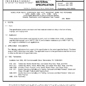 This specification covers a corrosion and heat resistant nickel-iron alloy in the form of bars, forgings, and forging stock.