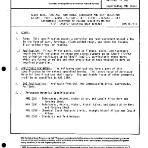 This specification covers a corrosion and heat resistant nickel alloy in the form of bars, forgings, flash welded rings, and stock for forging, flash welded rings, or heading.
