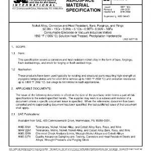 Nickel Alloy, Corrosion and Heat Resistant, Bars, Forgings, and Rings 52.5Ni – 19Cr – 3.0Mo – 5.1Cb – 0.90Ti – 0.50Al – 18Fe Consumable Electrode or Vacuum Induction Melted 1950 °F (1066 °C) Solution Heat Treated, Precipitation Hardenable
