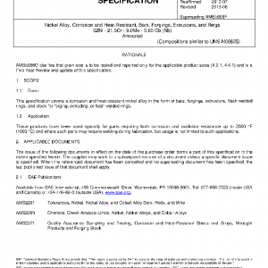 This specification covers a corrosion and heat-resistant nickel alloy in the form of bars, forgings, extrusions, flash welded rings, and stock for forging, extruding, or flash welded rings.